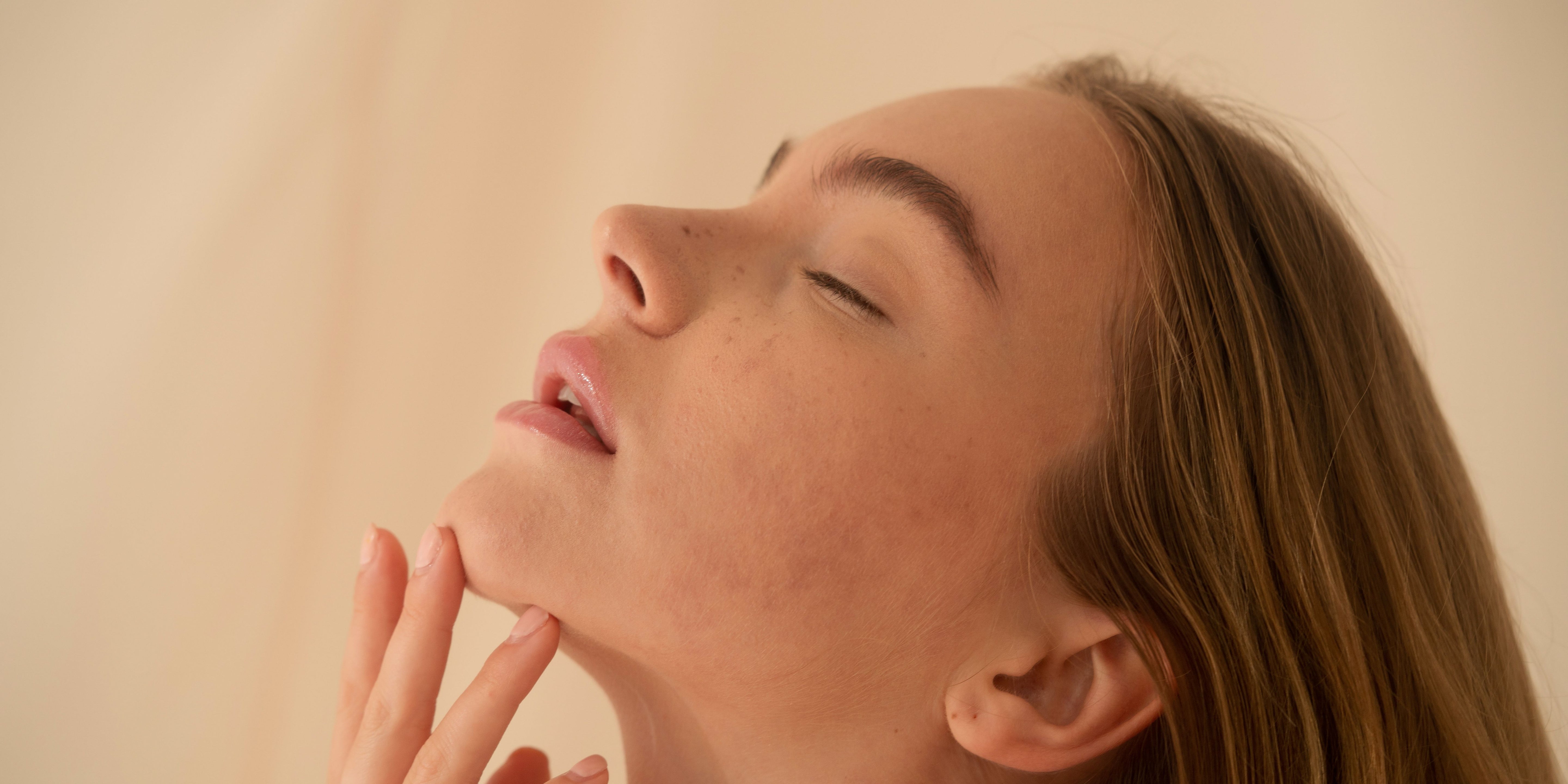woman looking happy with nice skin